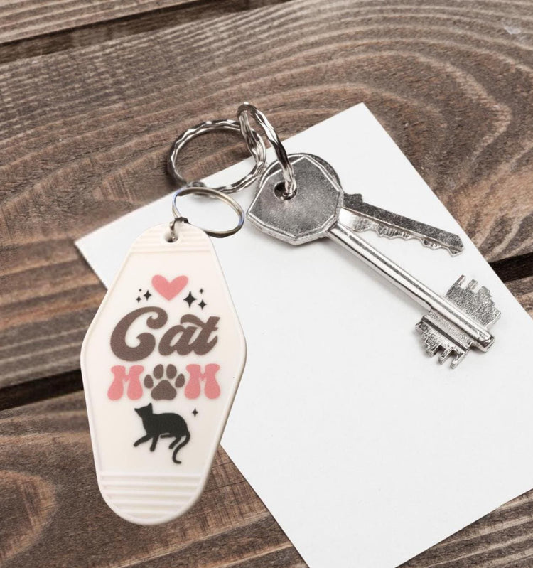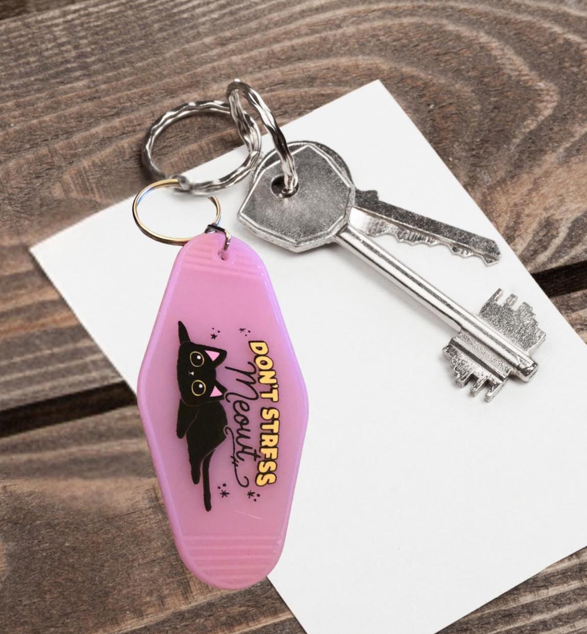 Vintage motel style keychain. Laser cut acrylic keychain with gold or silver hardware in unique cat themed patterns and styles!