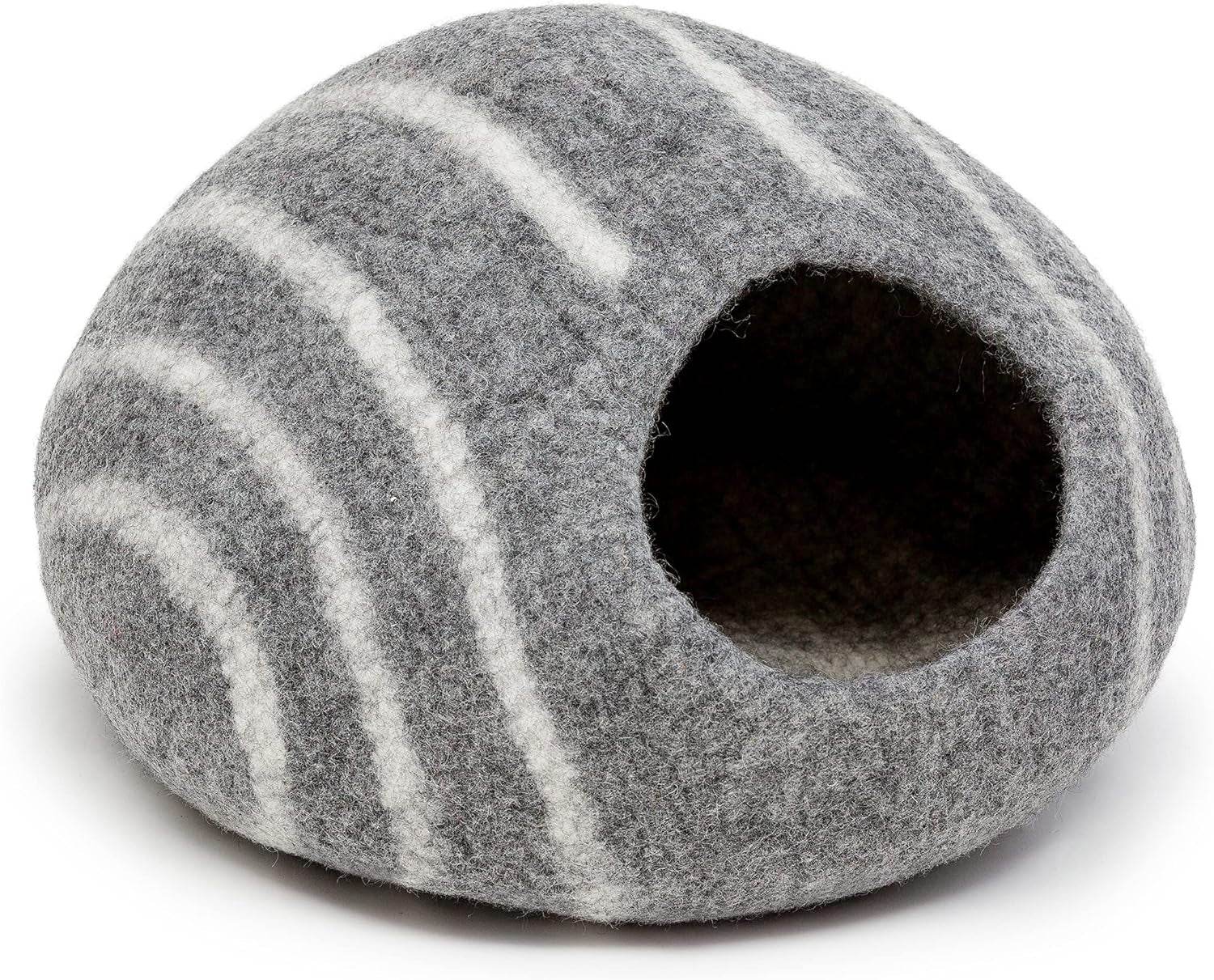Give your furry friend the perfect private retreat with the KOTE Cat Cave & Dog Cave. Designed as an enclosed hideaway, this cozy pod bed is handcrafted from soft, flexible felted wool, providing both warmth and comfort year-round. Its modern grey stripe design makes it a stylish addition to any home while offering your pet a secure space to relax, nap, or play.
