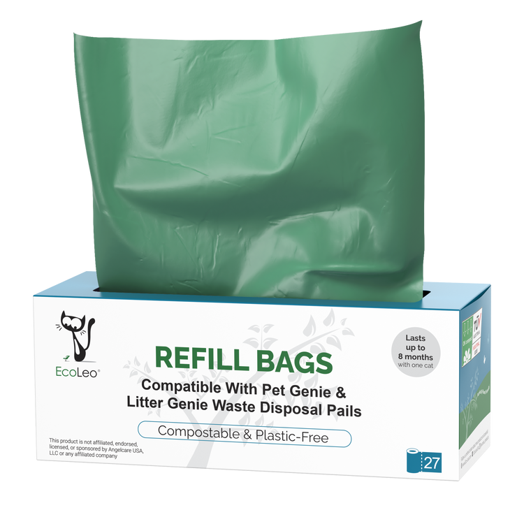 - FITS VARIOUS LITTER DISPOSAL PAILSEcoLeo refill bags are perfectly sized to fit Litter Genie*, Litter Genie* Plus, Pet Genie* & Litter Locker* cat waste disposal systems without slipping. Heavy duty, premium bags measure 28 x 12 inches. Strong and tear proof. Not compatible with the LitterGenie XL model. Due to the degradable nature of the bags, please only order as much as you will use within 9 months.