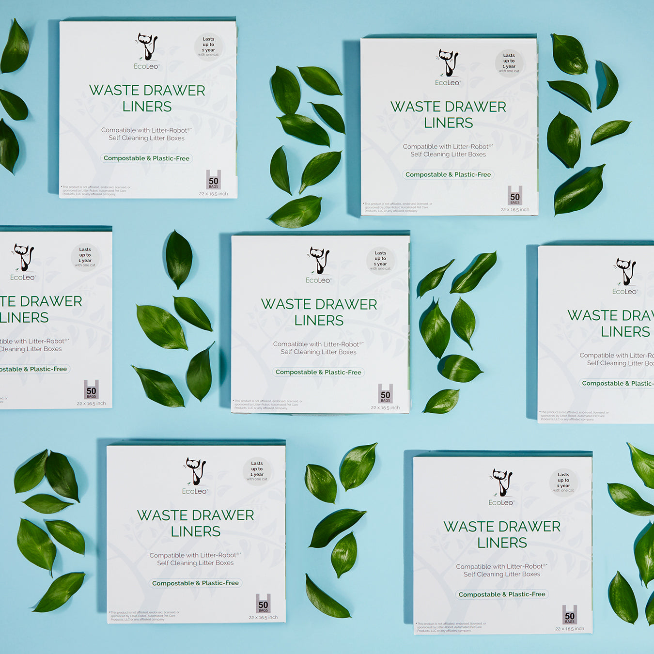 • ECOLEO LINERS COMPATIBLE WITH LITTER-ROBOT®* SELF-CLEANING LITTER BOXESOur alternative Litter Robot liners made by EcoLeo are custom sized to fit waste drawers of all Litter-Robot 3 and earlier models. Come with easy-tie handles. Also fit the Catit®* SmartSift®* system drawer.  Measure 22x16.5 inches. Opaque white and unscented.  Litter Robot Liners Due to the degradable nature of the bags, please only order as much as you will use within 9-12 months.