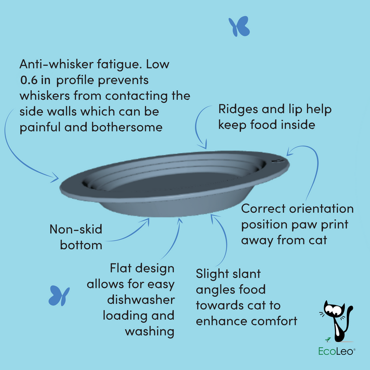 - ANTI-WHISKER FATIGUETRUE whisker friendly dishes with a height of 0.6 inch. Shallow and wide provides whisker relief, heavy base prevents sliding. Prevents your kitty’s whiskers from touching the side wall of bowl which can cause pain, discomfort and stress during meal time.