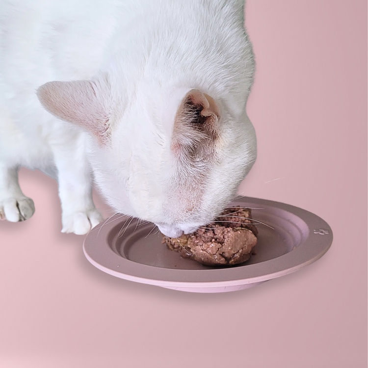- DESIGNED FOR CAT PEOPLE BY CAT PEOPLEPatented design created by a cat expert and cat rescue owner, this dish features aesthetic details designed to make feeding time easy for the pet parent and enjoyable for the pet. 0.6 x 7 inch diameter with a feeding area diameter of 5.5 inch. Catfood stays inside, plate stays in place, cats eat more naturally on a flat, angled, soft surface. Best size for kittens, Persians, seniors, toy dogs, puppies, and other small pets. Soft blush pink color.atent Pending, designed by a cat expert and cat rescue owner, our dish features details designed to make feeding time easy for the parent and enjoyable for the pet. 0.6 x 7 inch diameter with a feeding area diameter of 5.5 inch. Food stays inside, plate stays in place, cats eat more naturally on a flat, angled, soft surface. Excellent size for kittens, other small pets, toy dogs, and puppies.