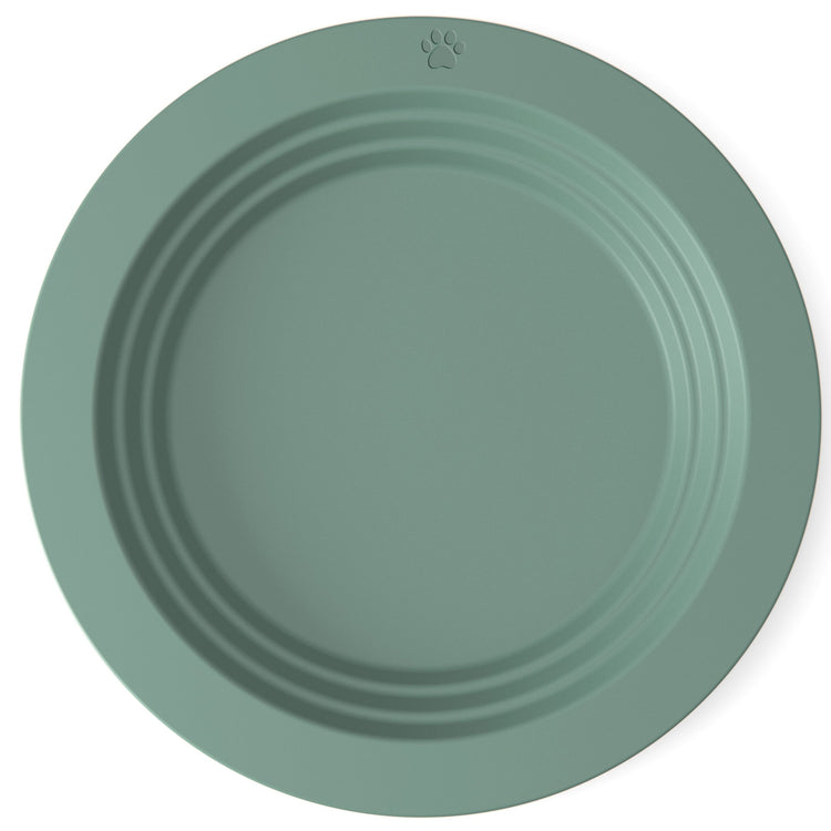 - FOOD STAYS INSIDESpill proof design ensures food does not spill despite the low profile in four ways: 1) Ridges on raised edges prevent food from being pushed out. 2) Flat surface is angled slanted towards your feline to make catching food easier without needing to push it around. 3) Friction of the soft textured silicone surface reduces food slipping and spilling 4) ¾ inch wide lip around the saucer to catch food for mess free eating.