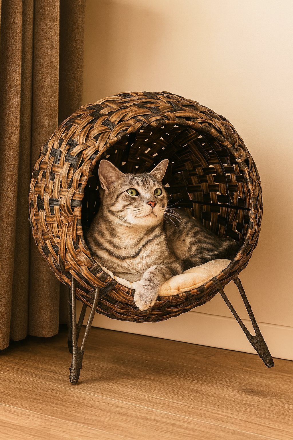 Bring natural warmth and sophistication to your home with the Maury Cotton Elevated Pet Bed. Crafted from hand-woven rattan wicker with a sturdy metal frame, this stylish piece combines functionality and aesthetic appeal. Its elevated, breathable design helps regulate your pet’s temperature, keeping them cool in summer and cozy in winter. Ideal for cats or small dogs up to 11 lbs, this bed doubles as a decorative accent in any modern or bohemian-style space.