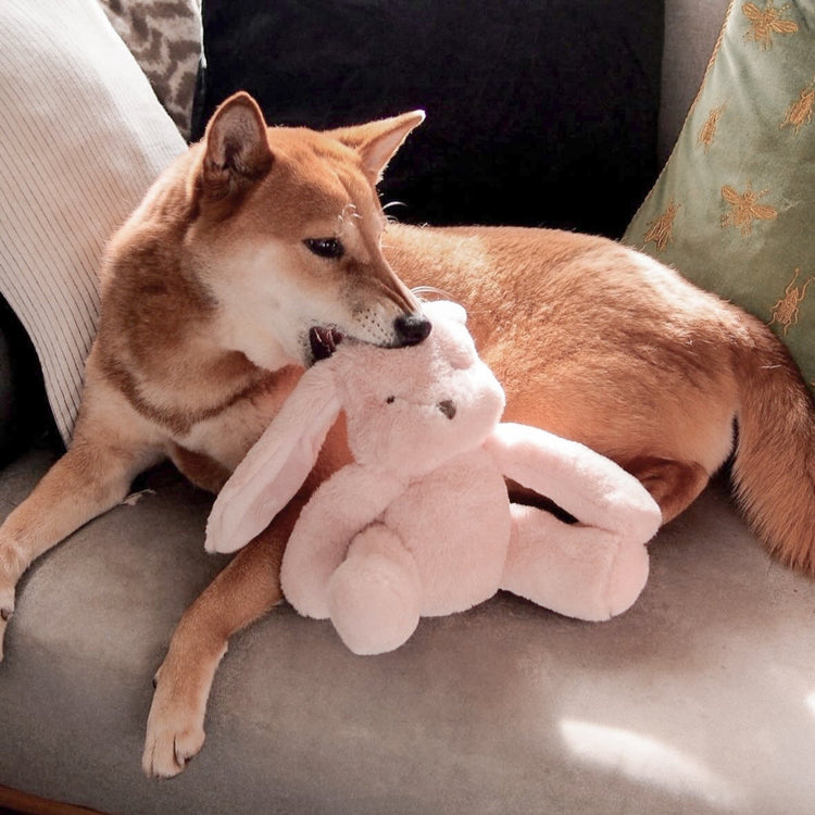 With long, crinkly ears and a playful squeaker, Ruby the Rabbit is as fun as she is cuddly. Her ultra-soft faux fur makes her perfect for snuggles, while her floppy, lightweight design is easy for pups to grab, shake, and carry. Whether for playtime or nap time, Ruby is a plush companion dogs will adore.