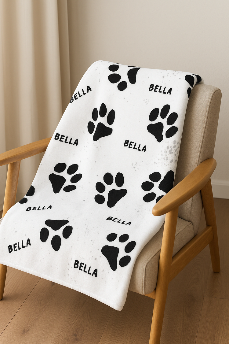 Create a meaningful, customized keepsake for your home with our Personalized Paw Print Sherpa Blanket. This soft, warm throw combines a clean, modern design with your pet’s name printed throughout the pattern, making it a unique piece for bedrooms, living rooms, and cozy corners. Designed for year-round comfort, this blanket offers a premium look while delivering everyday practicality.