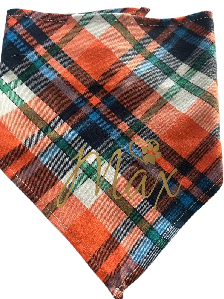 Each bandana is made to order in your selected plaid color with your chosen name. Please double-check spelling before submitting your personalization.